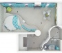 Стилистическое решение В прихожей разместилась гардеробная, санузел расширен и закрывается как полноценными дверями, так и раздвижными со стороны гостиной, это позволяет при необходимости его полностью изолировать, а при желании, лежа в ванной, можно смотреть телевизор, слушать музыку. Кухня тоже скрыта за раздвижной системой из стекла с рисунком на фасаде – все двери могут полностью закрывать кухню или открывать ее. Зона мягкой мебели получилась достаточно большой, каркас выполнен по индивидуальному заказу, материалы для заполнения самые современные, поэтому по функциональности и комфорту мягкая зона не уступает диванам лучших брендов, она же служит и ступеньками на подиум для кровати. В самом подиуме предусмотрены ниши для хранения, что позволило максимально задействовать все пространство.