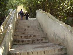 Скрывшаяся под переплетением лавровых ветвей «Водяная лестница» получила свое название оттого, что вместо перил по ее бокам струятся два узких потока воды, текущей из «Двора канала». Прежде эта лестница вела в небольшую часовню на вершине скалы, а заодно предназначалась для омовения перед молитвой.