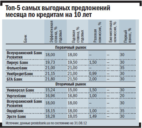 Ипотека подорожала. В августе ставки по кредитам на жилье, по данным портала prostobank.ua, выросли в среднем на 0,63 п. п. (до 20,20% годовых) против июльских + 0,05 п. п. Максимально поднялись ставки по кредитам на "первичку" на 0,5-1,5 п. п. (до 19-24% годовых), в то время как на вторичном рынке — на 0,5-1 п. п. (до 12-23% годовых).