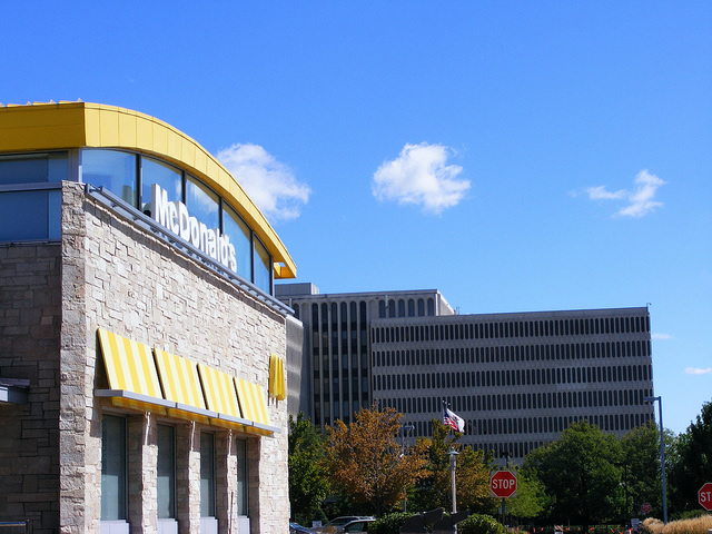Центральный офис корпорации-гиганта в области продажи фаст-фуда McDonalds расположен в небольшом городке Оук-Брук, штат Иллинойс, США. Здание было разработано и построено в 1988 году архитектором Дирком Лоханом. Изначально планировка офиса была очень проста и состояла из 3-х этажей подземной парковки, всю остальную площадь занимали просторные экологически чистые офисные помещения и зеленые сады. Общая площадь здания в целом составляет 356 000 квадратных метров.