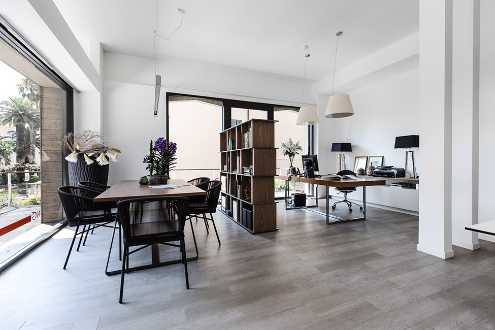 Это офис студии NG-studio, который можно посетить в Санремо, Италия. Офис занял огромное просторное и очень светлое помещение с большими окнами, через которые можно лицезреть красочные виды на город. Задняя стенка поделена на рабочие зоны. В интерьере сделан акцент на светлые тона, в особенности на белый цвет, который иногда лишь дополняется древесными или зелеными оттенками.