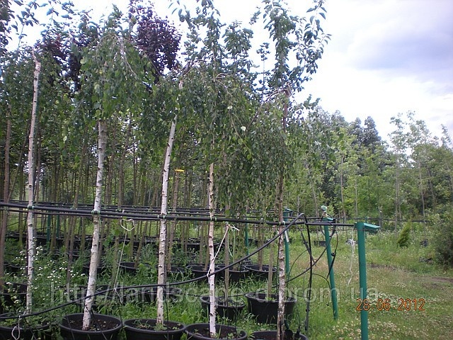 маленькое штамбовое дерево, живописное, медленнорастущее, с зонтикообразной, плакучей кроной, высотой до 5 – 7 м и шириной до 3 – 4 м, кора белая, гладкая, имеются редкие черные трещины, побеги гибкие. Листья светло-зеленые, меньше, чем у видового растения, заостренные, треугольные, по краю пильчатые, распускаются ранней весной, осенью приобретают желтую окраску.Корневая система:поверхностная, чувствительна к уплотнению почвы и засаживанию приствольного круга, наличию дренажа, интенсивно развивается.Требования:солнце, очень зимостойка.